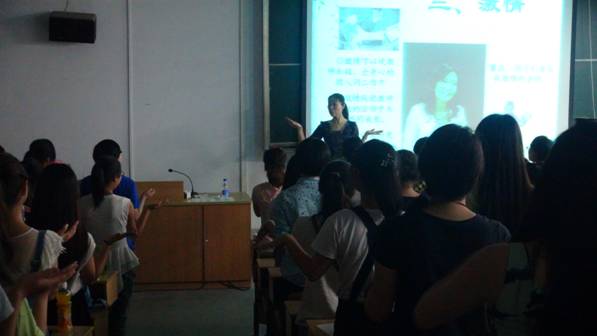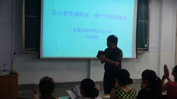 5月29日晚,安康市政府幼儿园高级讲师张树静老师应邀来我校,在江南校区1510教室开展了题目为“让心里充满阳光,做个幸福的教师”的专题讲座。2013级学前教育专业同学聆听了讲座。王辉书记代表教育科学系欢迎张老师来安康学院做学术讲座。