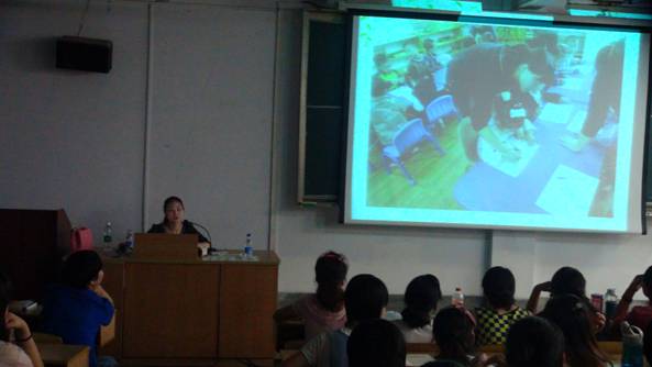 张老师授课幽默,理论与实践结合,不断为大家讲解自己的实例。在讲座的过程中张老师也和同学们进行现场互动,活动气氛活跃。同学们纷纷表示自己获益匪浅,希望早日投入到幼教行业,并保证,将用自己百分百的热情关心爱护自己的学生,让自己的学生在快乐,温暖的环境中健康的成长。